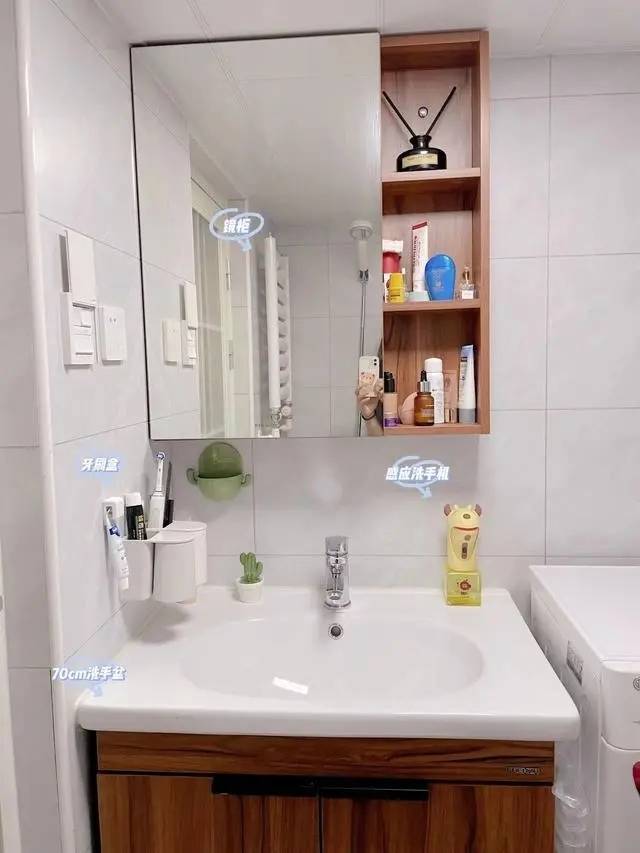 空间虽小,但能讹诈的一定要讹诈起来,镜子接收的是镜柜,而非单纯的镜子,这样作念的标的,便是能更好的收纳洗漱用品。