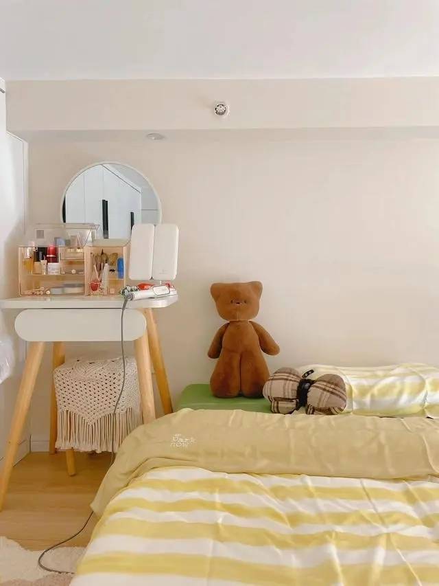 何况莫得接收床头柜的神志,而是加入了毛糙的化妆桌,不错在这里化妆。因为紧挨床,是以夜晚寝息前,水杯、手机也不错舍弃在上头,用来充任床头柜。
