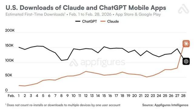 反不雅被封杀的Claude,反而成了香饽饽,它的日下载量迎来大幅飙升,无数用户一边骂着好意思国政府,一边猖獗下载Claude。